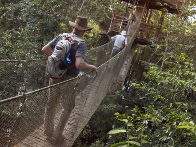 Enjoy guided excursions led by expert naturalists to spot wildlife at nearby oxbow lakes and along jungle trails. Spend some time relaxing in a hammock, enjoying the local swimming hole, or visiting a nearby plantation. Go on a caiman-spotting cruise after dinner.