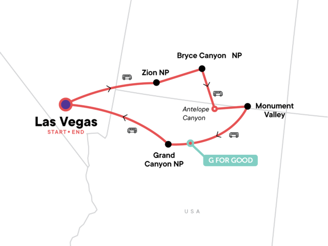 Your Welcome Moment: Welcome Moment - Meet Your CEO and Group. Hike to The Narrows. Bryce Canyon National Park visit. Horseshoe Bend and Antelope Canyon visits. Navajo guided Monument Valley jeep tour. Sunset along the rim of the Grand Canyon. Full day hiking in Grand Canyon National Park. Drive along Route 66. Entrance fees to all national parks and monuments with hiking and walking excursions. All transport between destinations and to/from included activities.