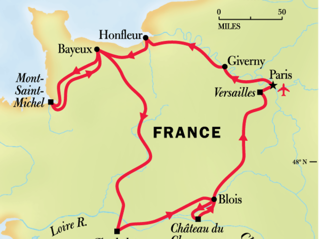 Your Family Journeys Moment: Palace of Versailles Family Visit, Versailles. Arrival transfer. Guided Paris Île de la Cité walking tour. Giverny and Monet Gardens visit. Excursion to Mont-Saint-Michel. Short Bayeaux orientation walk. Troglodyte cave visit. Canoeing on the Cher River. Chenonceaux Castle Visit. Visit Clos Lucé. All transport between destinations and to/from included activities.