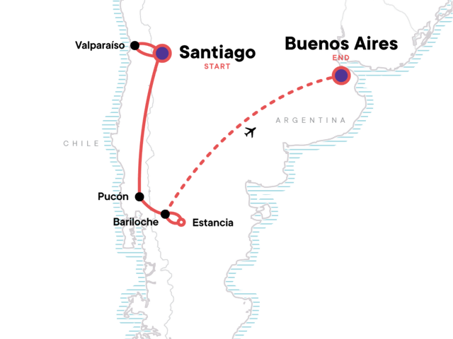 Looking to discover the best of Chile AND Argentina in one unforgettable experience? These 10 days travelling through gorgeous landscapes and cities are your solution. Visit coastal Valparaíso, get active in the adventure-sport mecca of Pucón, and journey to a genuine gaucho ranch outside of quaint, lakeside Bariloche, before finishing up in the iconic "don't cry for me" cosmopolis of Buenos Aires. Get yourself to this southern part of the world and go home recharged.