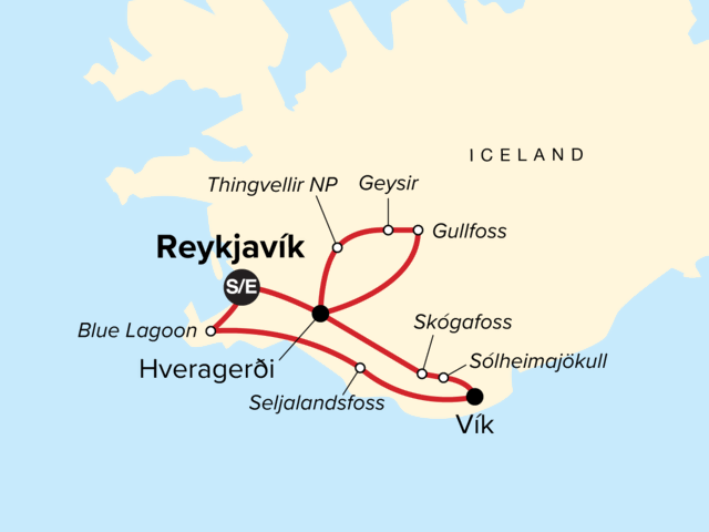 Your Wellness Moment: Blue Lagoon Visit, Grindavik. Arrival transfer. Perlan Museum visit. Whale watching tour. Visit a horse farm. Lava tunnel visit. Golden Circle tour including Thingvellir National Park, Gulfoss waterfall and Geysir Hot Springs. Skogafoss waterfall lunch. Visit a Black Sand Beach. Westman Islands excursion. Seljalandsfoss waterfall. Blue Lagoon admission. All transport between destinations and to/from included activities.